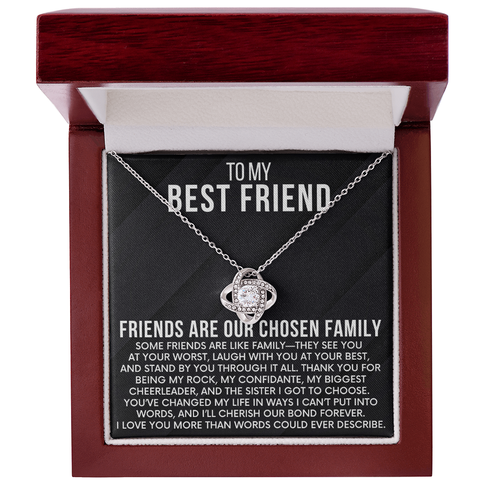 Imagine her reaction receiving this beautiful Love Knot Necklace. Representing an unbreakable bond between two souls, this piece features a beautiful pendant embellished with premium cubic zirconia crystals. Surprise your loved one with this gorgeous gift today!