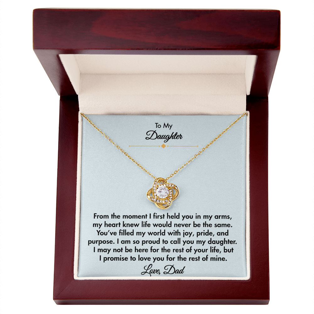 Imagine her reaction receiving this beautiful Love Knot Necklace. Representing an unbreakable bond between two souls, this piece features a beautiful pendant embellished with premium cubic zirconia crystals. Surprise your loved one with this gorgeous gift today!