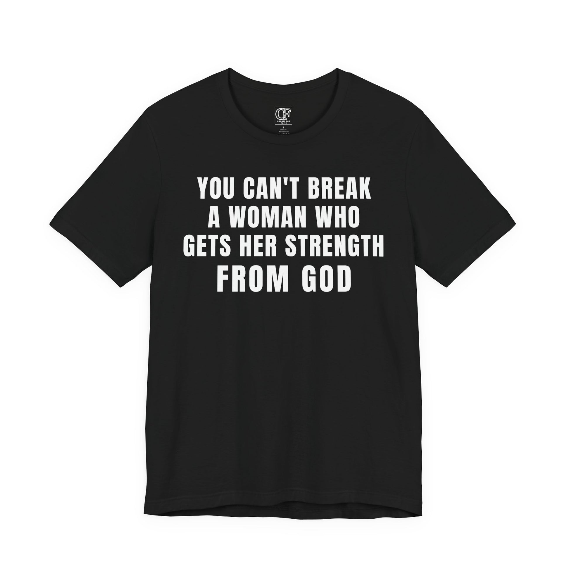 ✨ Features the bold statement: “You can’t break a woman who gets her strength from God” — a daily reminder of who you are and Whose you are.